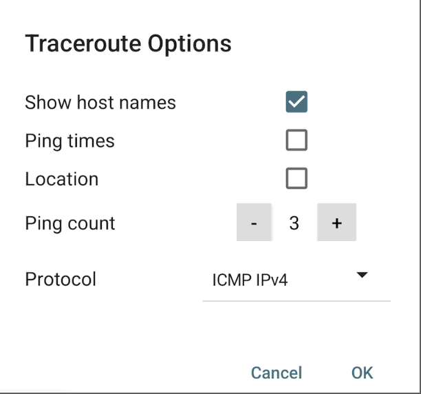 1. アプリを開き、メニューから「Traceroute」を選択